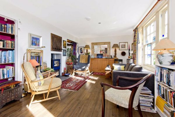 Instantly alluring with its traditional, symmetrical facade and mullioned sash-and-case windows, the charming rural cottage opens directly into a wide, open-plan space, flooded with south-easterly light, and characterised by a classic, neutral backdrop and handsome timber flooring. The essence of country chic, with its stylish, eclectic décor, the space is enhanced by a cosy log-burning stove and promises a wonderful setting for everyday living, dining, and entertaining. Flowing seamlessly from here, a timelessly-classic kitchen (with garden access) exudes rural character and charm, with bespoke, artisan cabinetry, an impressive Esse stove, and a traditional clothes pulley. The homely space also incorporates an integrated oven, an induction hob, a statement extractor hood, and a freestanding fridge/freezer, whilst a central island provides additional workspace, and an ideal setting for breakfasts and casual dining.