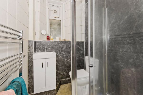 Externally, the villa is accompanied by a large, shared front garden, mainly laid to lawn and bordered by mature, leafy trees and shrubbery, in addition to a shared rear drying green. Unrestricted on-street parking can be found nearby.